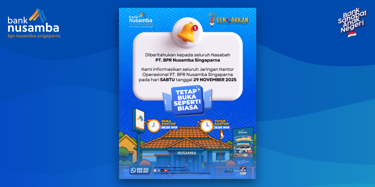 Diberitahukan kepada seluruh Nasabah PT. BPR Nusamba Singaparna, kami informasikan seluruh Jaringan Kantor Operasional PT. BPR Nusamba Singaparna pada: